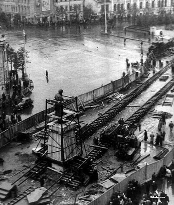 Перенос памятника А.С. Пушкину на другую сторону Тверской. 1950 год