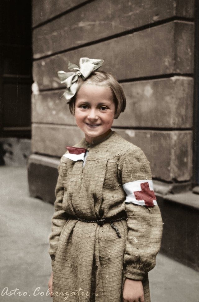 8-летняя Розочка Годзевская, самая юная медсестра Варшавского восстания. Она работала в полевом госпитале, помогая раненым тем, что подносила воду, отгоняла мух и была лучиком радости