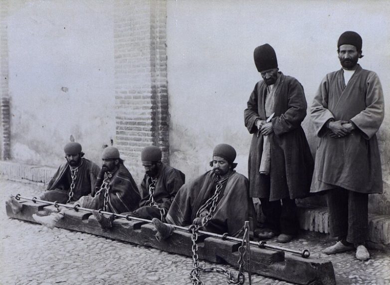Колодники и охранник с ножом. 1899 год. Персия. Фотография А. Севрюгина