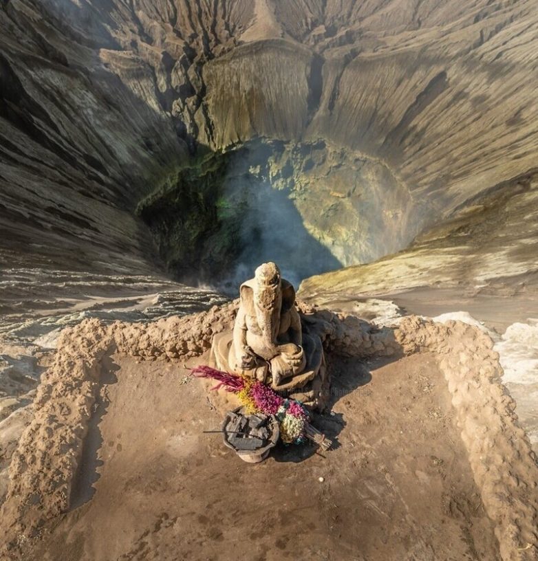 Индуистский бог Ганеша на вершине действующего вулкана горы Бромо, Ява, Индонезия
