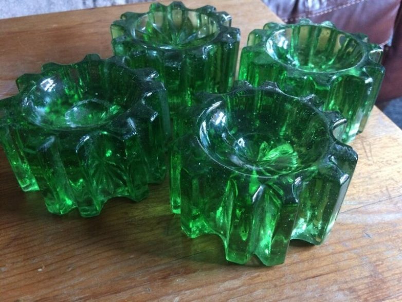 Четыре предмета из зеленого стекла. Они довольно тяжелые