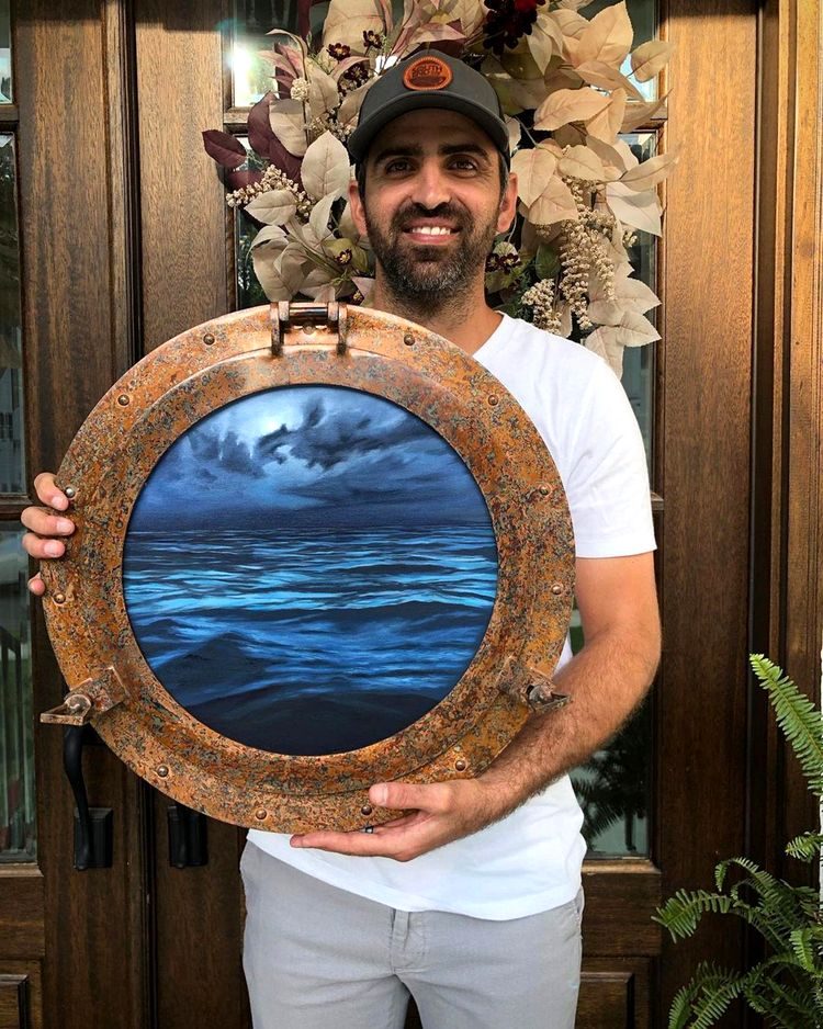 Фантастический морской пейзаж, помещённый внутрь старого иллюминатора