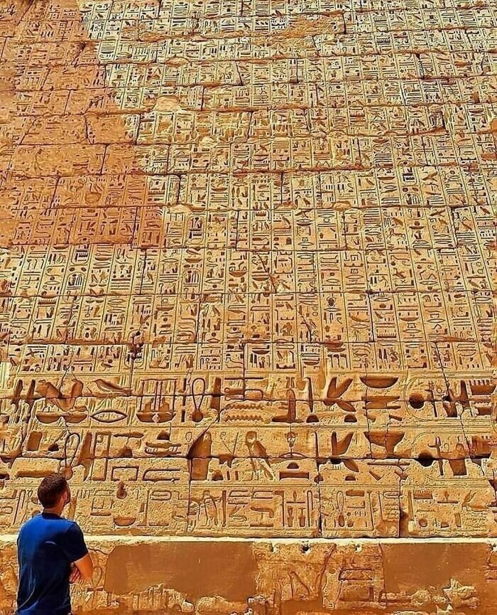 Иероглифическая надпись на стене погребального храма Рамзеса III в Мединет-Абу на западном берегу Нила в Луксоре, построенного около 1186-1156 гг. до н.э.