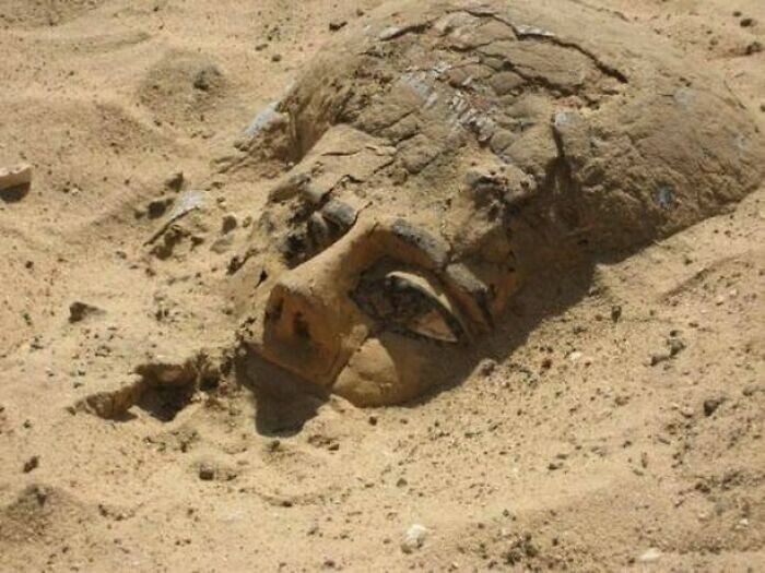 Деревянный саркофаг показался из песка в Абидосе, Египет