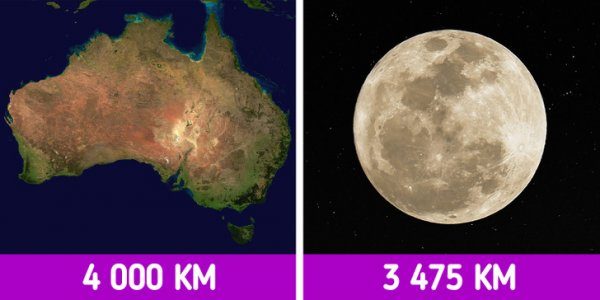 Диаметр Луны меньше, чем протяженность Австралии с востока на запад.
