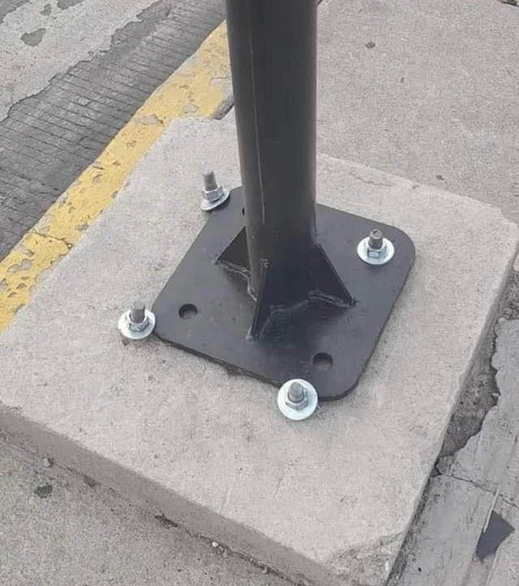 “Столб надежно закреплен на 4 болтах. Увидел это в Сербии.”