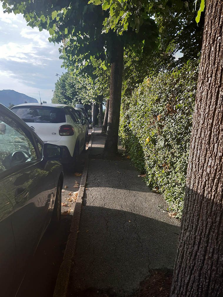 Тротуар с деревьям в городе Стреза, Италия