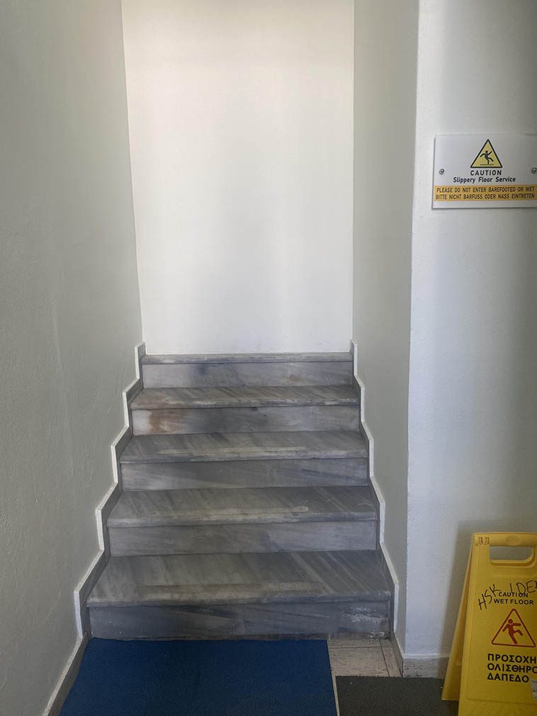 Лестница в никуда. Наверное там был проем, которые замуровали, но смотрится это крайне странно теперь.