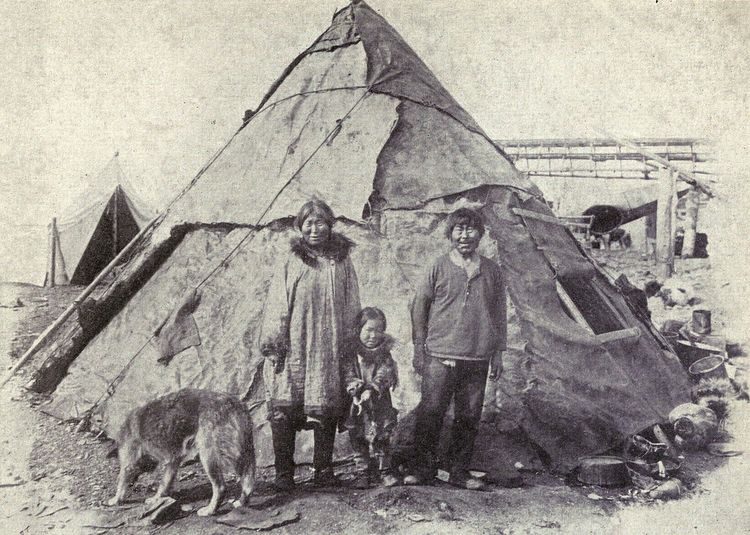 Семья эскимосов перед своим летним домом, 1915 год