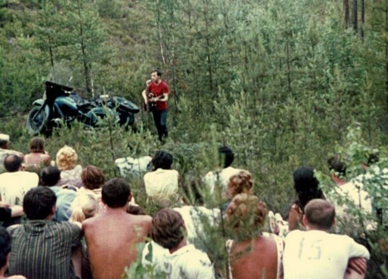 Выступление Владимира Высоцкого на «Лесном концерте» под Сосново на озере Лампушка Ленинградской области. Фото 1 июля 1972 года