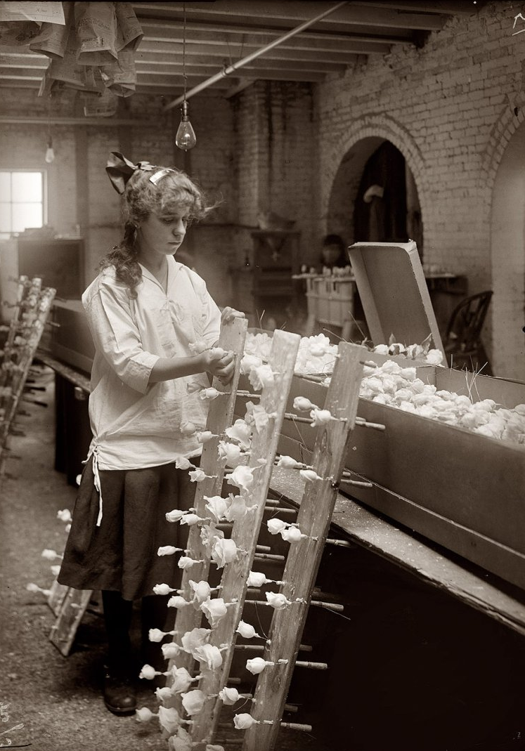 Девушке на фото всего 14 лет. Но Маргарет Чампа трудится наравне со взрослыми. Фото сделано в январе 1917 года на цветочной фабрике в Бостоне.