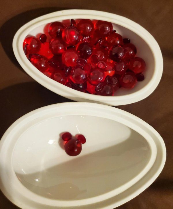 Купила целый контейнер, полный таких „шариков“ в виде Микки-Мауса. Они наполнены чем-то ароматным.