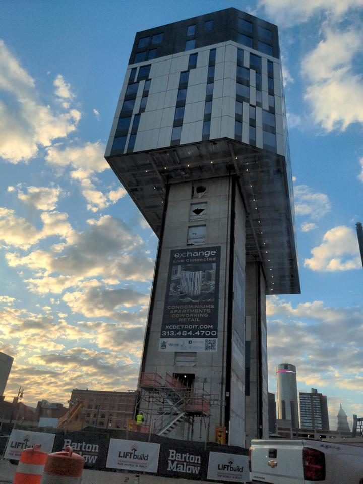 2. Это здание в Детройте строят сверху вниз. Этажи по очереди возводят на земле, а после поднимают их вверх.