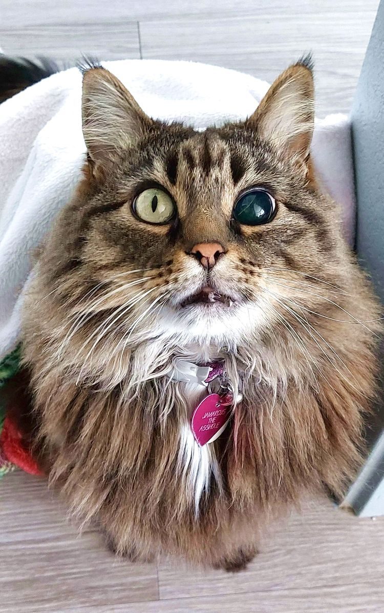 «У моего котенка не выпали молочные зубы, так что теперь у него 2 клыка»