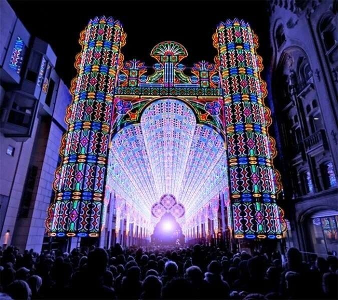 Собор с 50 000 светодиодных фонарей, во время Фестиваля света, Бельгия