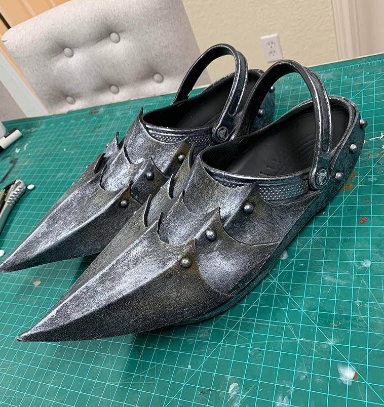 “Делаю костюм предводителя назгулов, и хочу обувь сделать комфортной. Для этой цели отлично подошли мои старые кроксы.”