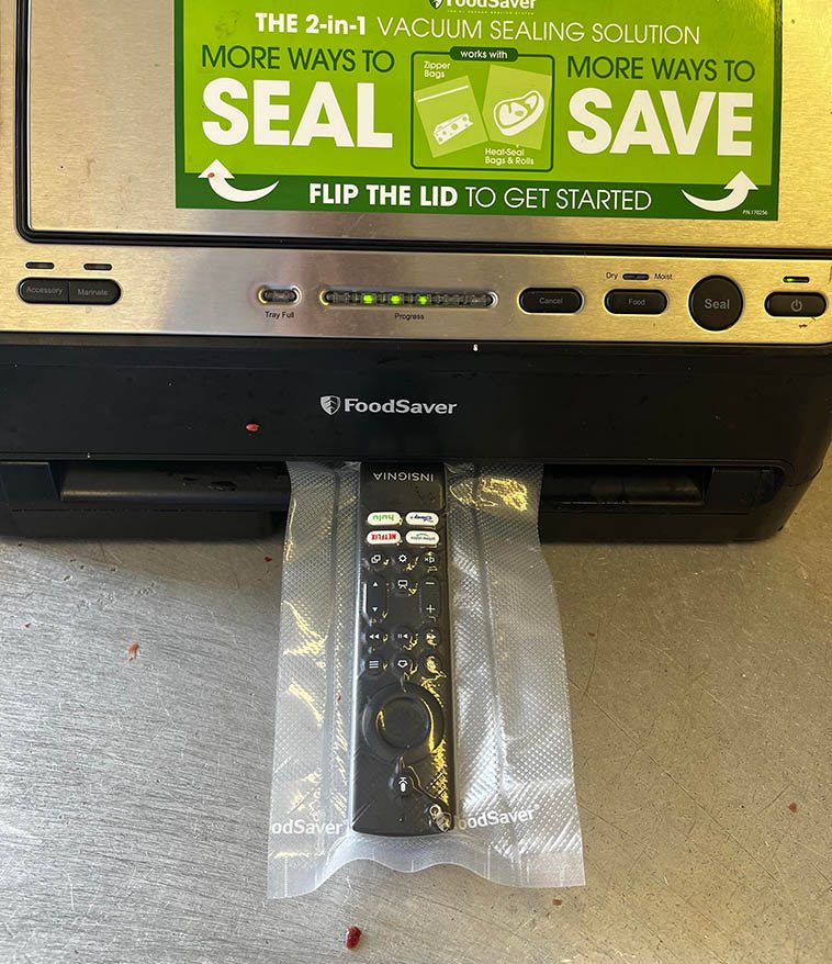 “Я беспокоился, что пульт от телевизора, который висит в помещении, где мы для кое-какого процесса постоянно используем несколько тонн соли, испортится, а потом придумал загнать его в вакуумную упаковку для мяса”