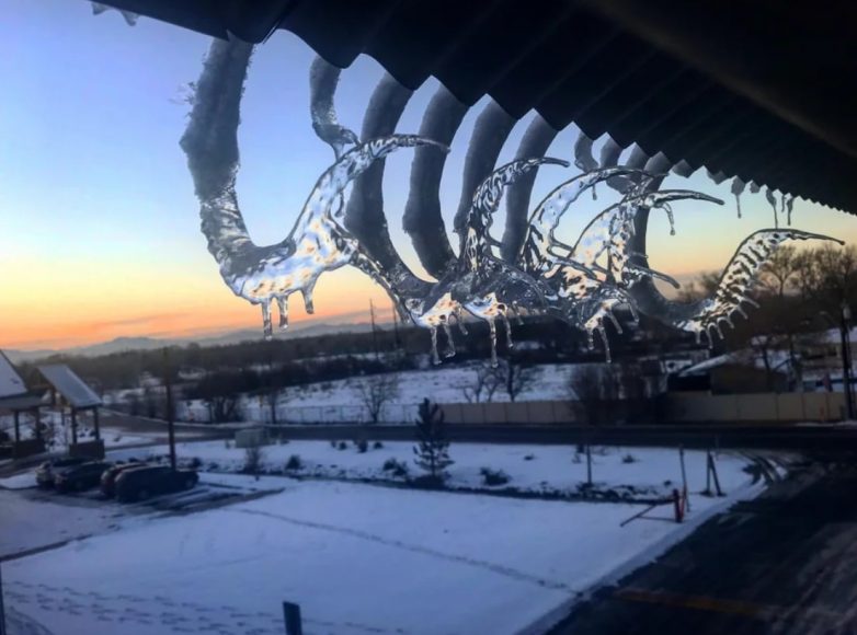 Сильный ветер сформировал сосульки столь необычной формы