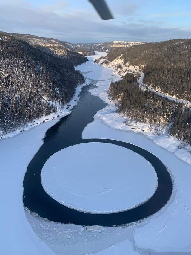 Идеальный круг льда, образовавшийся на реке