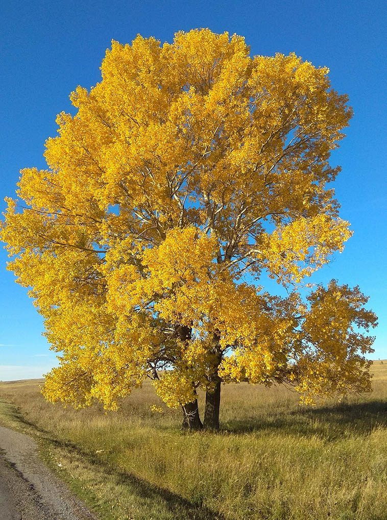 16. Это дерево выглядит так ярко, словно его листья сделаны из чистого золота. На фоне голубого неба это особенно красиво.
