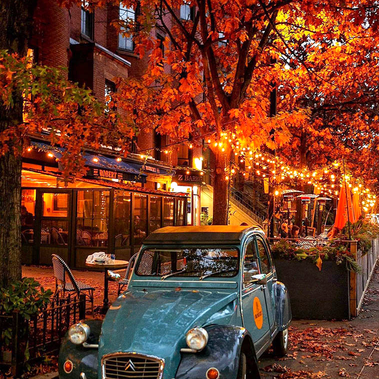 8. Осень тихо бродит улочками Бостона и окрашивает все вокруг в удивительные цвета и оттенки. Очень захотелось остановиться возле этого автомобильчика с чашкой горячего чая.