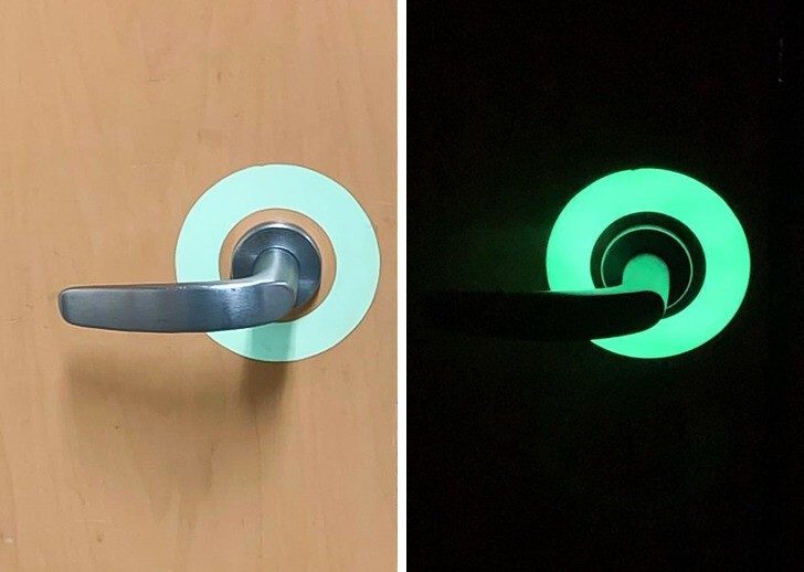 3. «Это светящиеся в темноте наклейки на дверные ручки на случай, если отключится электричество, когда вы находитесь в комнате»