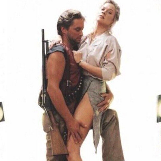 Майкл Дуглас и Кэтлин Тёрнер за кадром «Роман с камнем». 1984 год