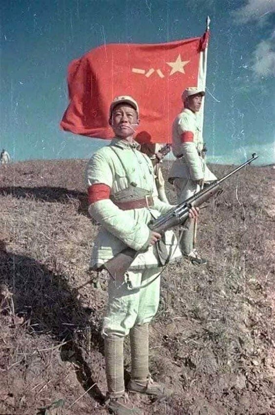 Боец Народно-освободительной армии Китая (НОАК) у боевого знамени 1949 год. Фотограф Владислав Микоши