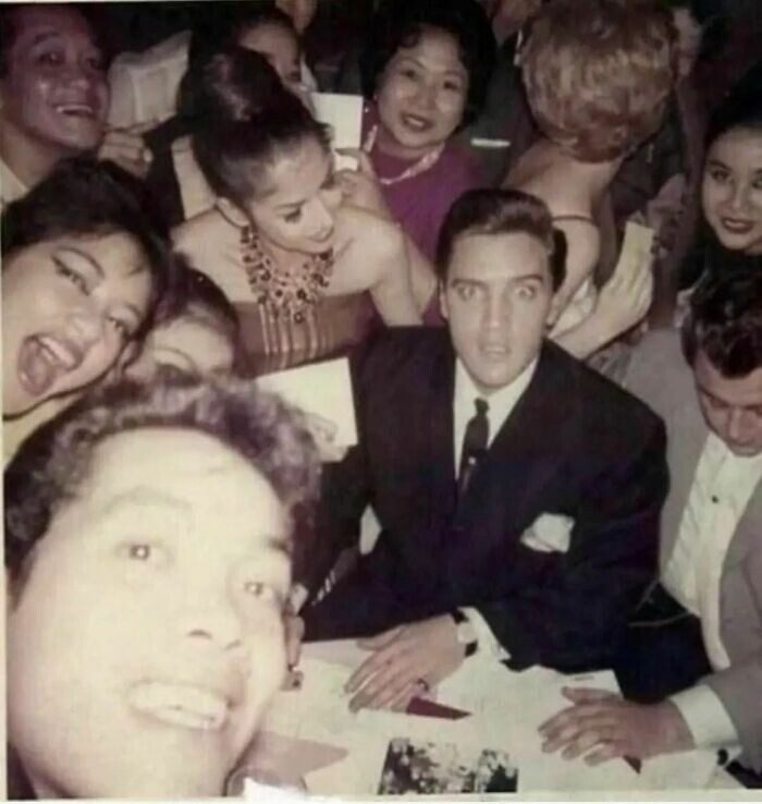 Фанат делает селфи с Элвисом Пресли. 1960-е