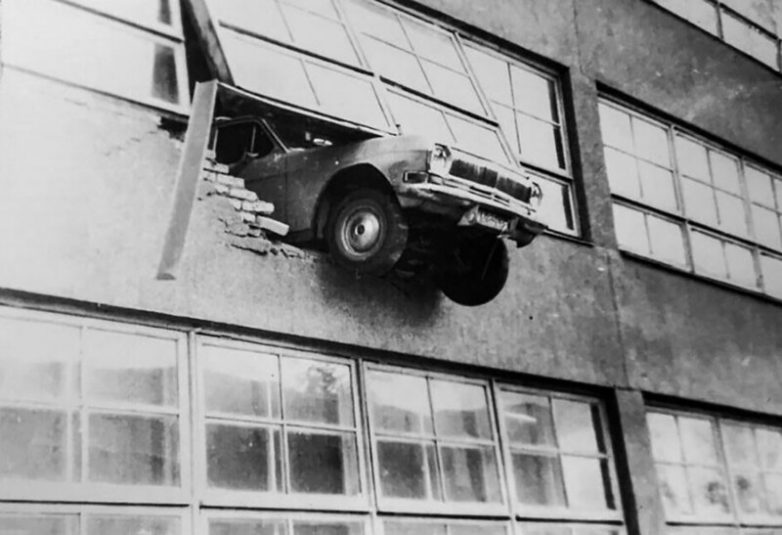 Волга пробила кирпичную стену, а повреждений практически нет!