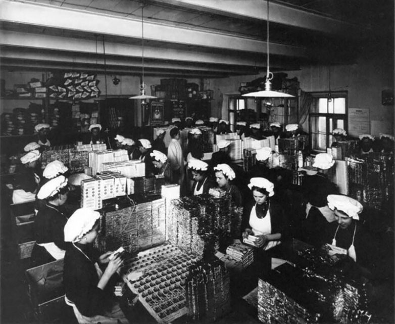 Упаковка продукции на кондитерской фабрике Жоржа Бормана, Санкт-Петербург (1900-е / 1910-е годы)