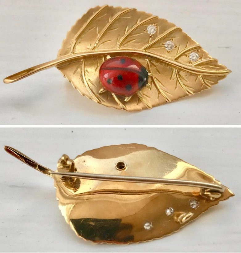 Нашёл эту булавку с изображением божьей коровки из 18-каратного золота и бриллиантов за 3 доллара