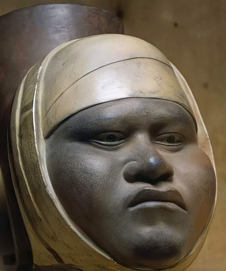 Судя по размеру головы, полная статуя была, вероятно, трехметровой высоты, но кого она представляет, остаётся загадкой.