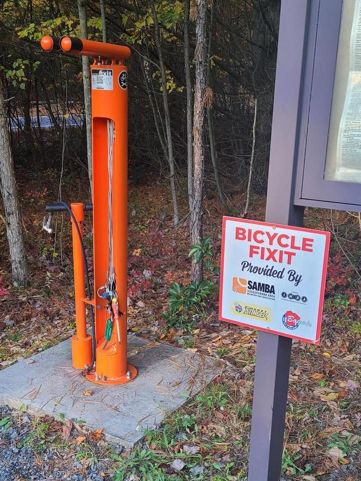 5. Мини-станция для обслуживания велосипеда в начале популярного туристического маршрута по лесу