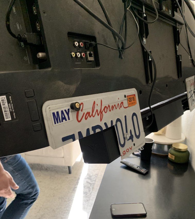 8. Весьма своеобразное крепление для саундбара, сделанное из старых номерных знаков для авто