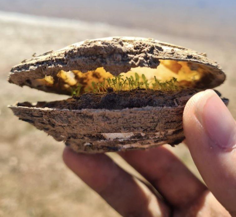 4. Внутри моллюска образовалась мини-колония из новых растений