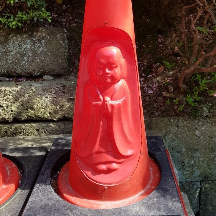Дорожный конус с изображением Будды, который можно найти в Японии