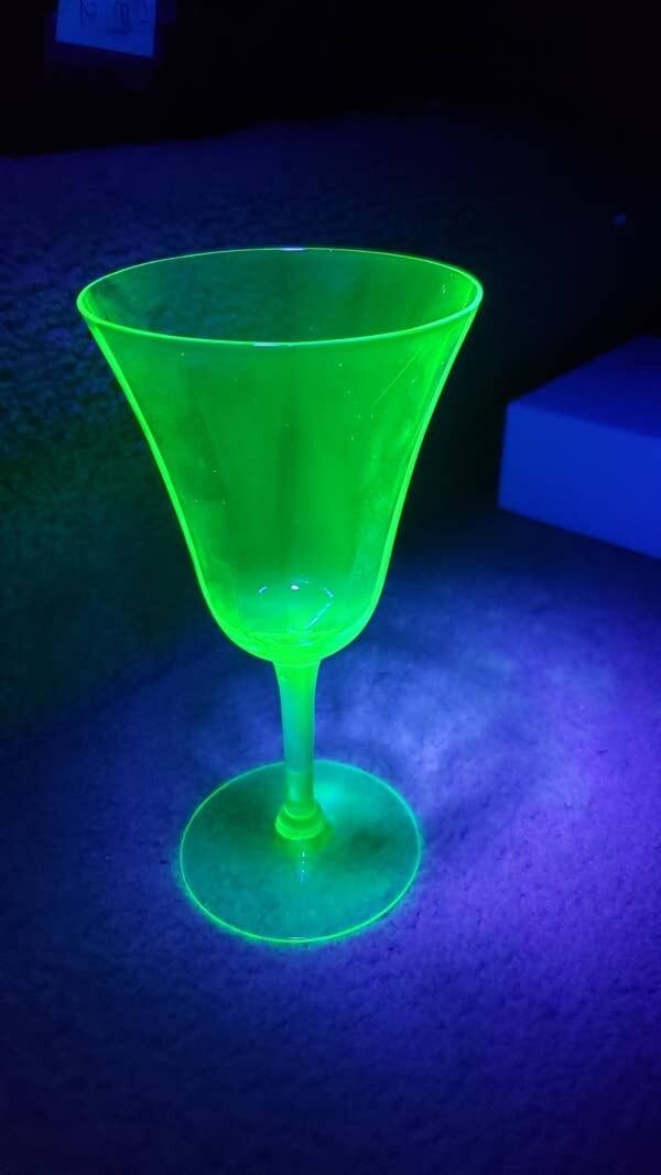Это кусок уранового стекла, особого вида стекла, которое светится в темноте из-за урана, добавленного при изготовлении