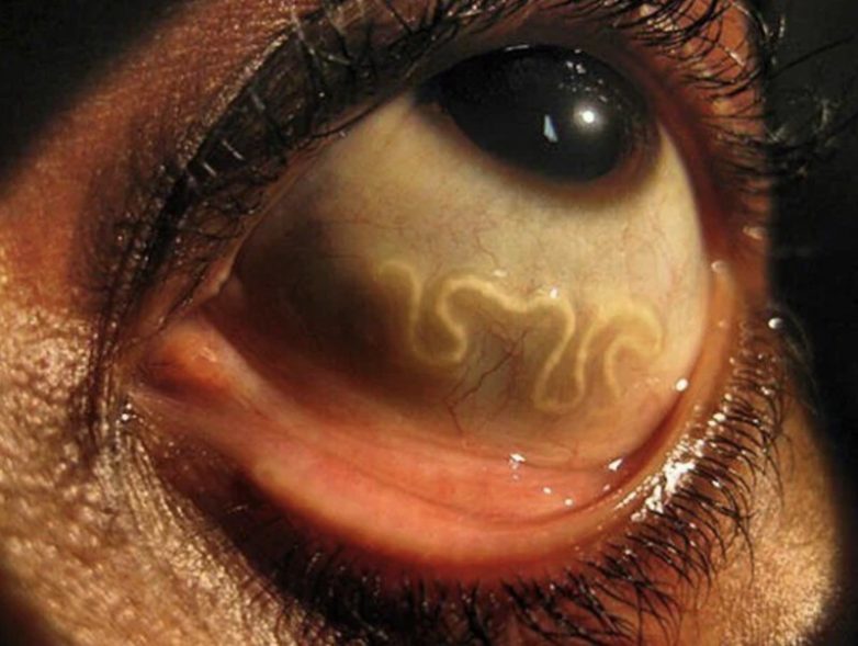 Loa loa — глазной червь. Перемещаясь по тканям человеческого организма, этот червь может добраться до глаз