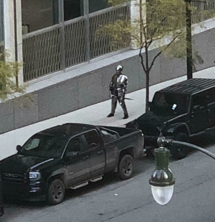 20. «Человек в средневековых доспехах просто стоит посреди Детройта»