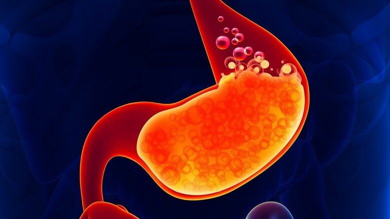 В желудочном соке помимо ионов, ферментов и органических кислот содержится также и соляная кислота — 0,6%По показателю рН желудочный сок находится между лимонной и серной кислотами. Желудок способен растворять зубы, кости, мясо, даже металл. Для последнего, правда, потребуется очень много времени. Например иголка не успеет раствориться и спустится в нижние отделы ЖКТ с остальной массой еды.