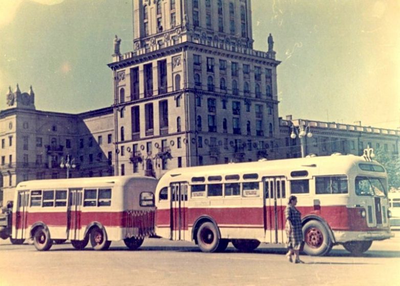 До изобретения «гармошки», автобус ЗиС-155 с прицепом. Минск, 60-е годы