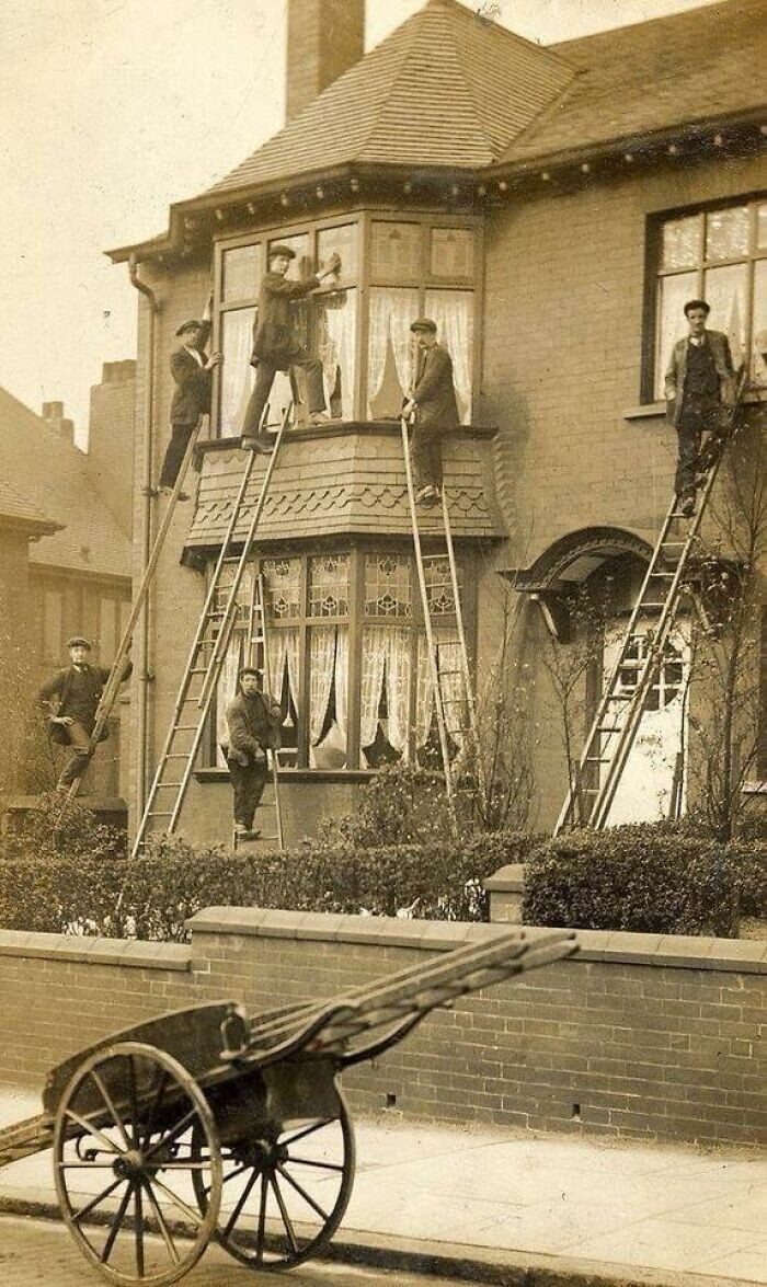 Даже мойщики окон носили костюмы 100 лет назад!