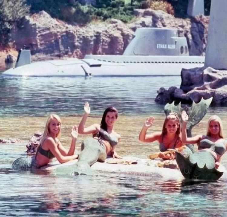 Русалки в Диснейленде машут пассажирам аттракциона «Подводна лагуна», приблизительно 1960 год