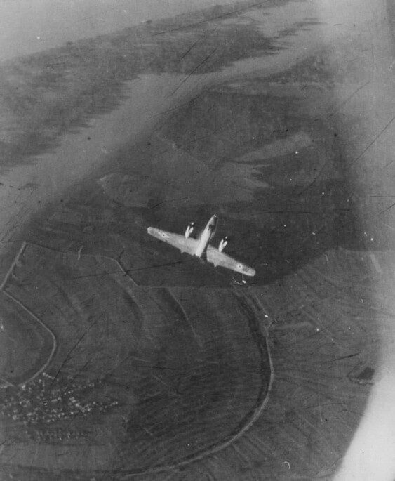 На борту самолета нанесена издевательская надпись, указывающая на отметки боевых вылетов — цитата из опрометчивого заявления Германа Геринга о том, что ни одна бомба не упадет на территорию Рейха.