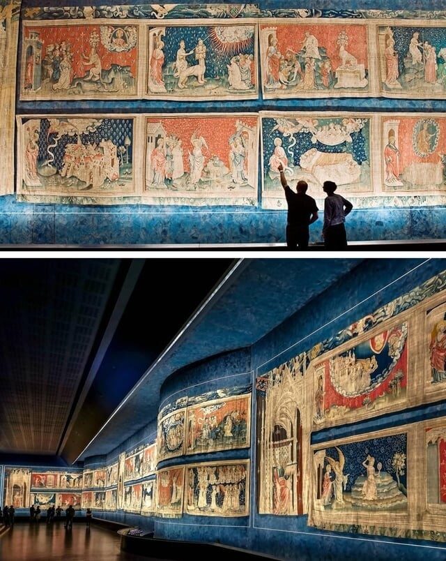 Гобелен «Апокалипсис», сотканный в Париже в 1377-1382 годах. На нем изображена история Апокалипсиса из Книги Откровения святого Иоанна Богослова в красочных изображениях, размещенных на 6 гобеленах, которые первоначально насчитывали 90 сцен