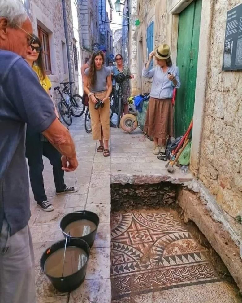 На улицах Старого града, на острове Хвар в Хорватии, обнаружена римская мозаика