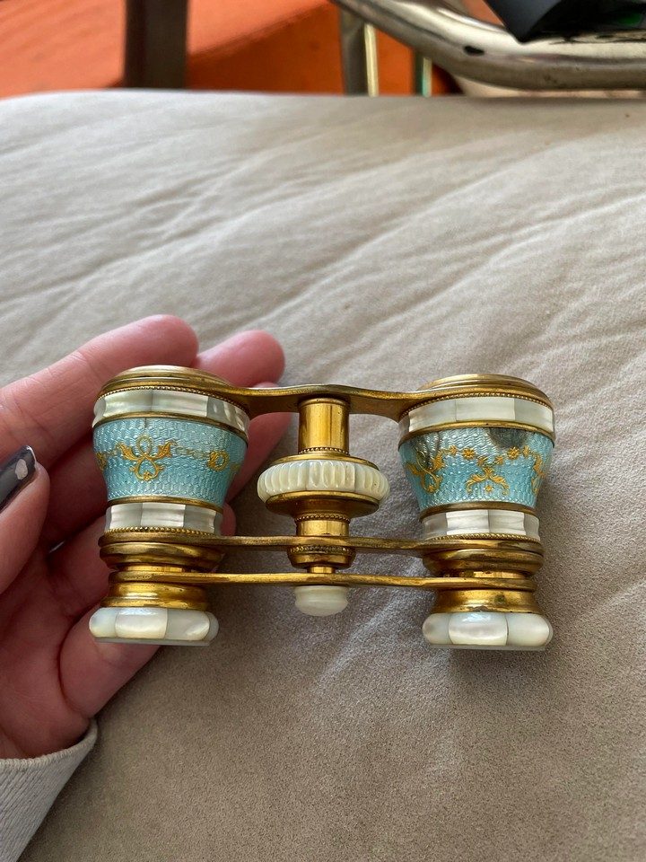 2. Французский оперный бинокль начала XX века, украшенный гильошированием