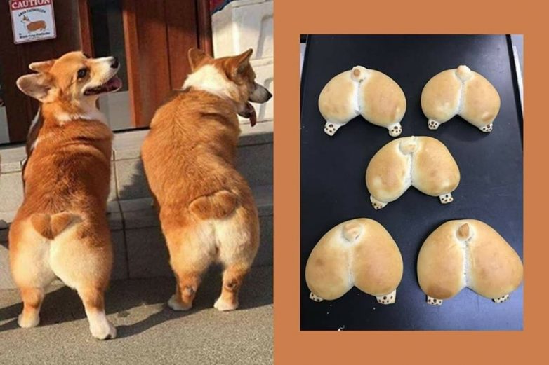 Одна японская пекарня из Саппоро выпекает булочки в виде… попки корги. Внутри собачьей попы — яблоки и заварной крем.