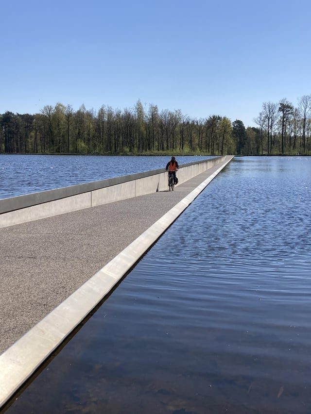 Мост через озеро сделан на уровне воды. Такое чудо построили в Бельгии